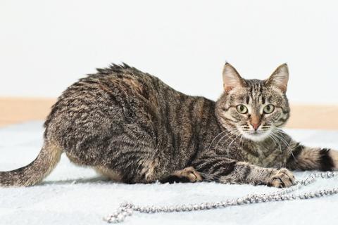 По настроению может поиграть и погонять мячик, но в целом Ириска — спокойная кошка.